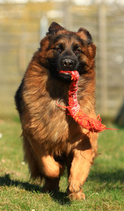 Körbericht: Eine fast große, kräftige und hervorragend aufgebaute, typvolle Hündin mit kräftigem Kopf. Hoher Widerrist, hervorragend gewinkelte Vor– und Hinterhand, sehr gute Ober– und Unterlinie. Sehr gute Länge und Lage der Kruppe. Sehr gute Haarlänge, hervorragendes Pigment.